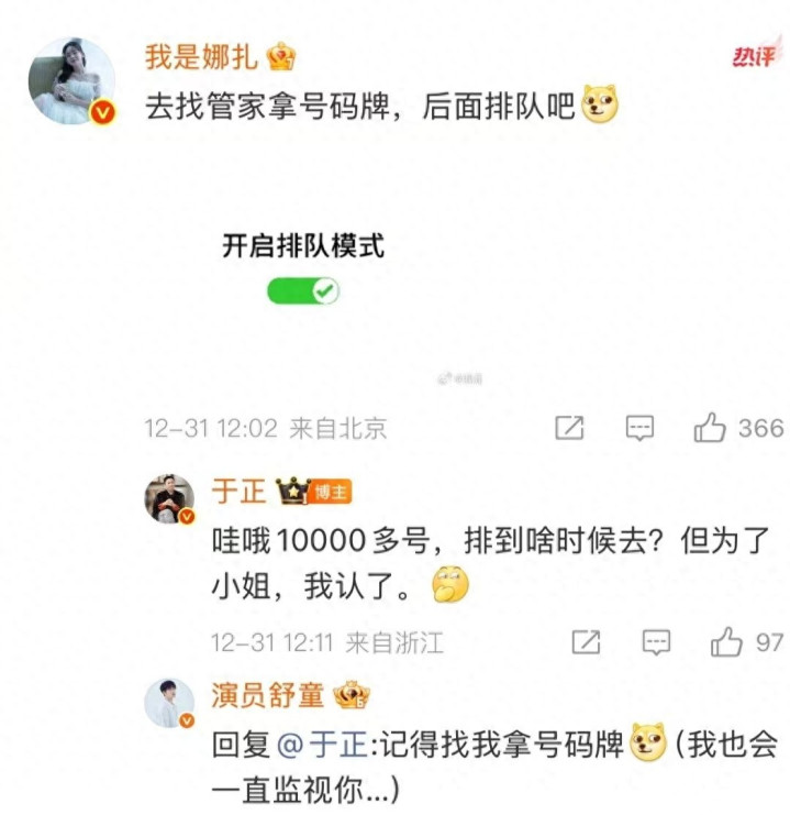 趣味的是,娜扎与于正的这份“互怼阐明”,早已不是第一次。此前两东谈主互助《玉茗茶骨》时,娜扎就曾公开让于正“列队等互助”,于正还幽默回话“领A001号求插队”,一系列互动尽显知友间的纰漏感。这次娜扎的捉弄,明显亦然基于对两东谈主关联的了解,并非坏心挑事,更像是闺蜜间的意思吐槽——毕竟她与张慧雯私情甚笃,日常频频磋商,对对方的拍戏动态了如指掌,这才能精确抛出话题,戳中网友的共同笑点。
