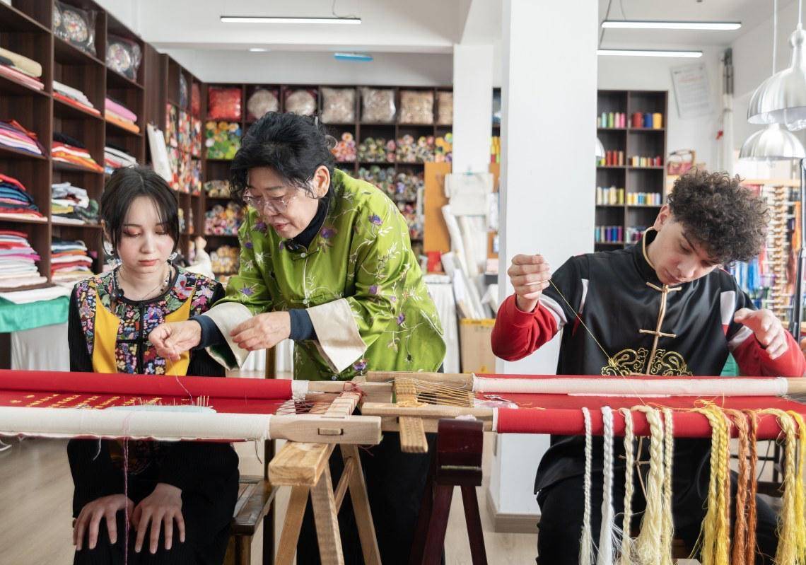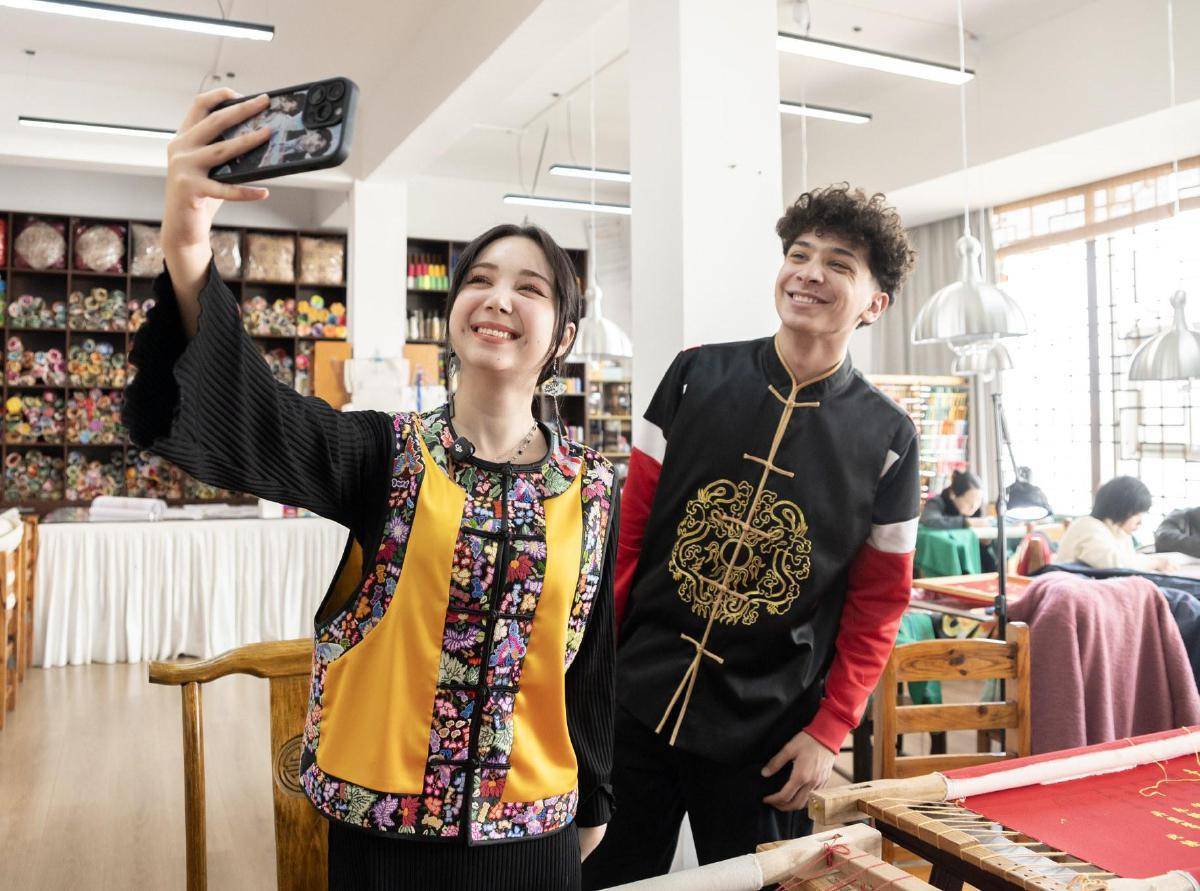 1月9日上昼,金月与周彬第一次走进刘小红刺绣艺术馆。两东谈主与刺绣的人缘,始于旧年秋天在华新1907文化公园的偶遇。“太好意思了!我其时就思,要是翌日亲一又成亲,送这么的礼物该多好。”金月说。