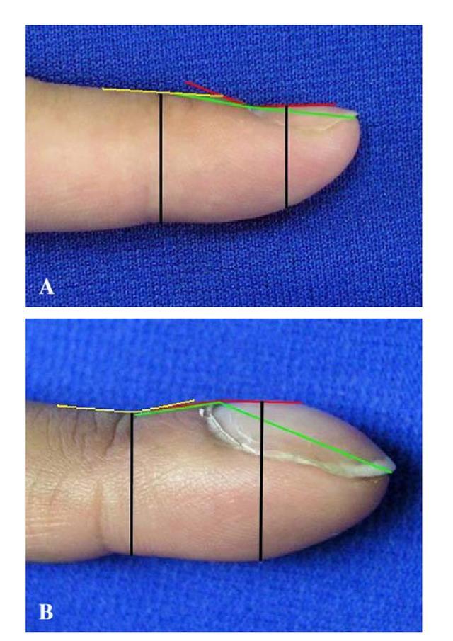 正常手指与杵状指对比